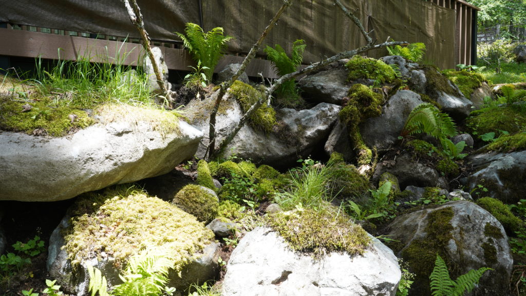 御泉水自然園内に生息している苔達の一部をビジターセンター横に集めて展示しています。実際に生きている苔達が織りなす空間をお楽しみください。