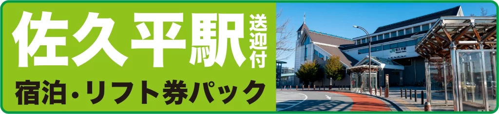 新幹線佐久平駅、JR茅野駅から白樺高原国際スキー場または池の平スノーパーク(レイクサイドプラザ前)への往復送迎とリフト券、宿泊がセットになったお得なパックです。運転が苦手な人もこれならOK。レンタルも充実しているので、手ぶらでもお越しいただけます。詳しくは以下のボタンをクリックしてください。 本宿泊パックの販売・お申し込み、お問い合わせは Eight Peaks Reort株式会社 長野県北佐久郡立科町芦田八ヶ野743 TEL.0267-55-7188